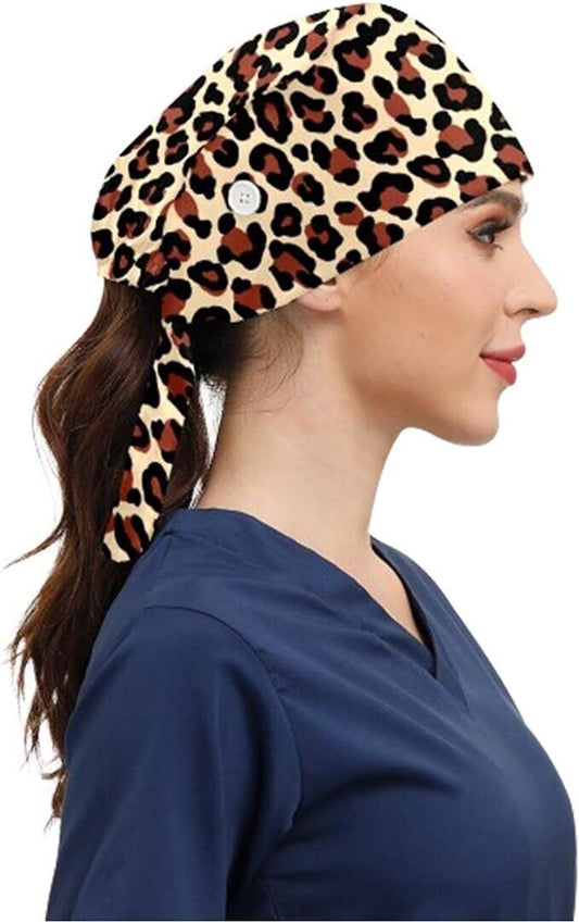 2Pcs Fashion Working Caps with Buttons Adjustable Sweatband Tie Back Working Hat