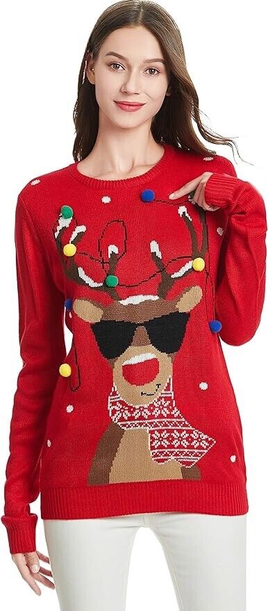 *daisysboutique* Women's Christmas Reindeer Rudolph Girl Sweater Holiday ( XXL )