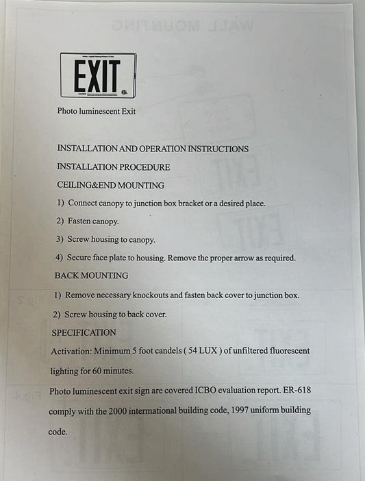 (Pack Of 2 )Heavy duty photoluminescent Exit Sign Green No Electric , No light bulb needed