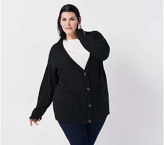 All Worthy Women’s Hunter McGrady Boyfriend Cardigan- Black