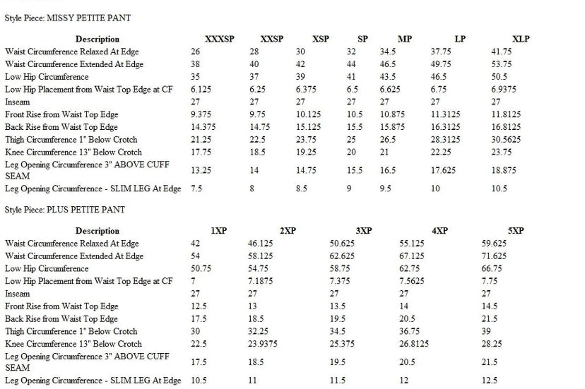- Inseam: petite missy/plus inseam 27"