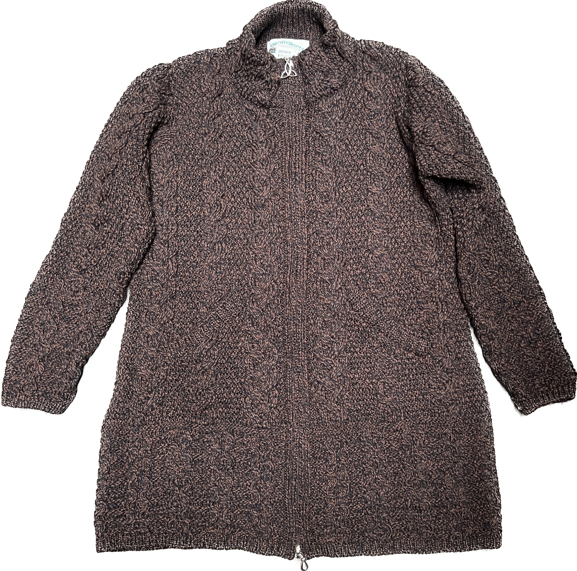 Aran Craft Merino Wool Women's Long Zip-Front Cardigan