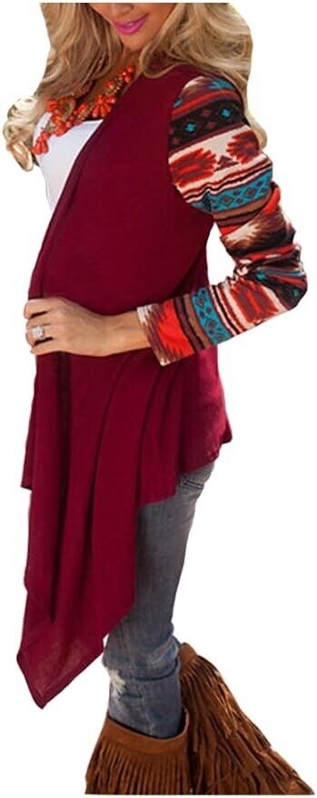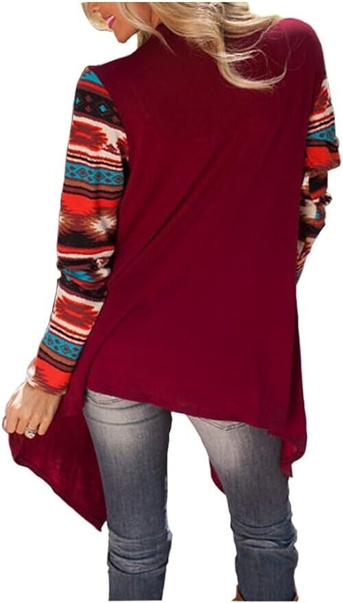 AuntTaylor Womens High Low Long Sleeve Boho Open Blouses Cardigans ( Red - XL )