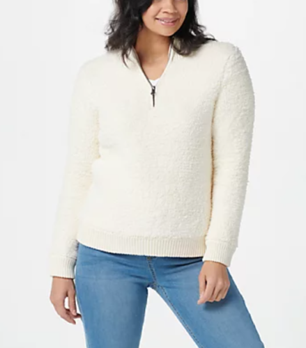 Barefoot Dreams Women's CozyChic Cable Half-Zip Pullover Off White