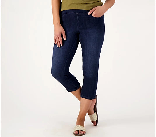 Belle by Kim Gravel Women’s Reg Primabelle Straight Leg Cropped Jean- Dark Indigo