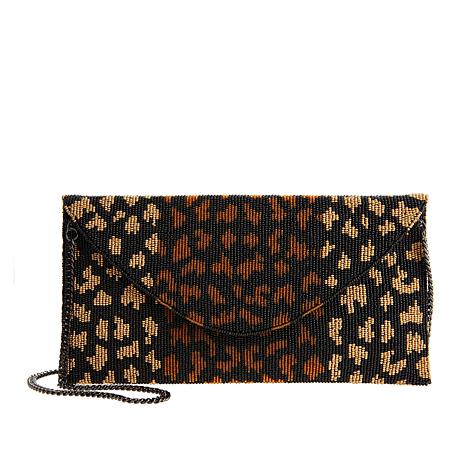 Clever Carriage Women's Leopard Beaded Clutch Bag - Retail 127$
