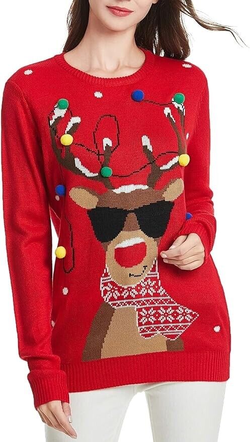 *daisysboutique* Women's Christmas Reindeer Rudolph Girl Sweater Holiday ( XXL )