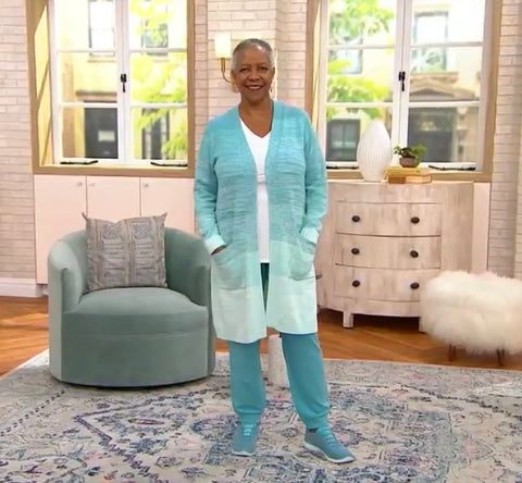 Denim & Co. Spacedye Open Front Long Sweater Cardigan- Turquoise
