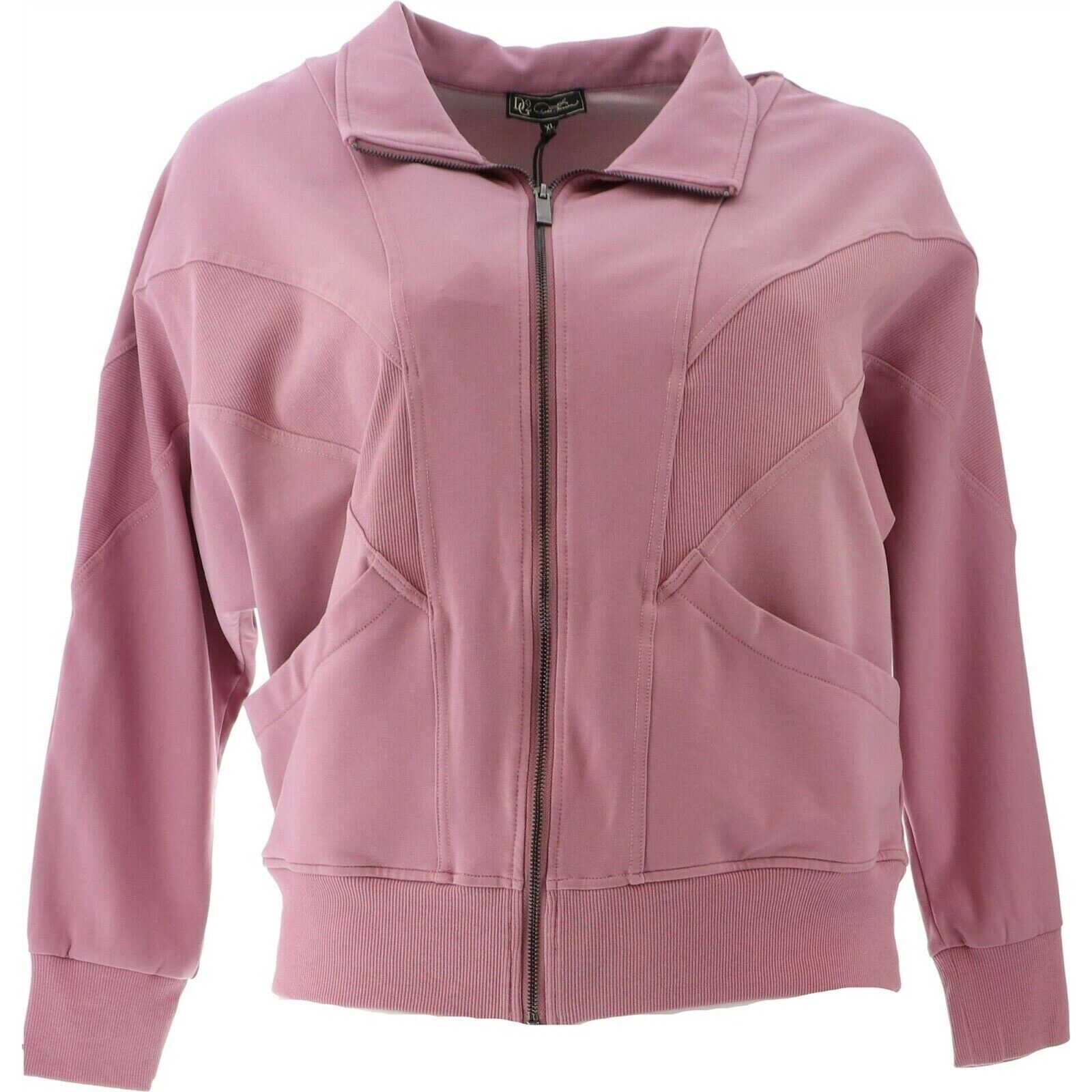DG2 by Diane Gilman "DG Downtime" Knit Flex Zip-Up Track Jacket Pink Size Small