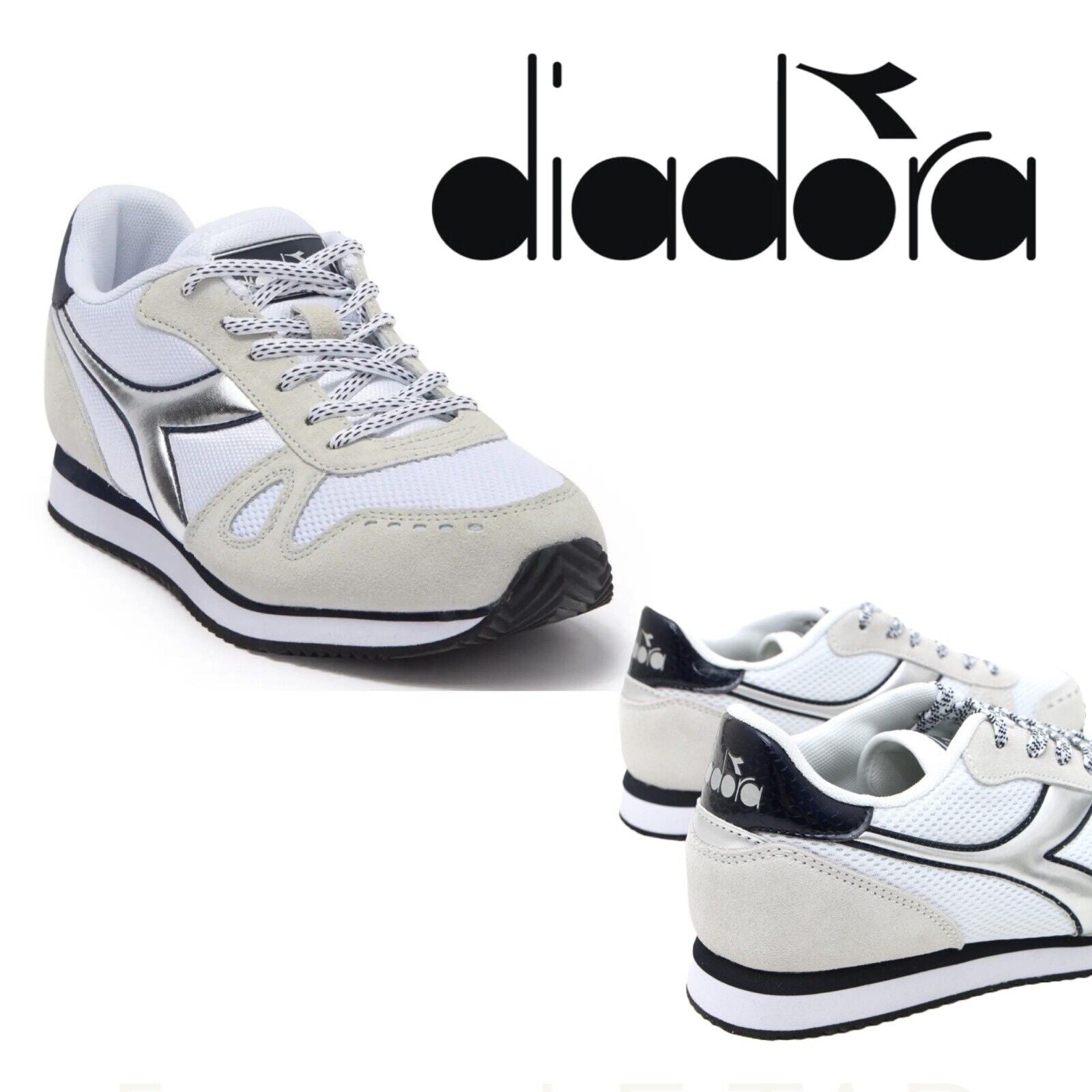 DIADORA Simple Run Sneaker In White/Blue Denim Womens Size 8 men Size 6.5
