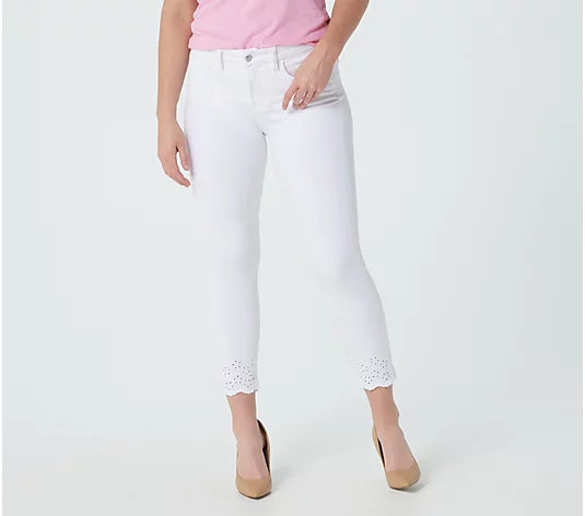 Jen7 by 7 for All Women's Mankind Ankle Skinny w/ Eyelet Hem - White