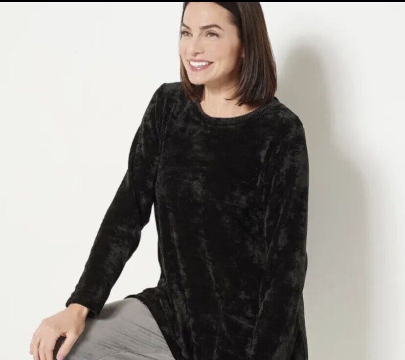 LOGO by Lori Goldstein Chenille Sweater with Sharkbite Hem-Black-XS A463632.