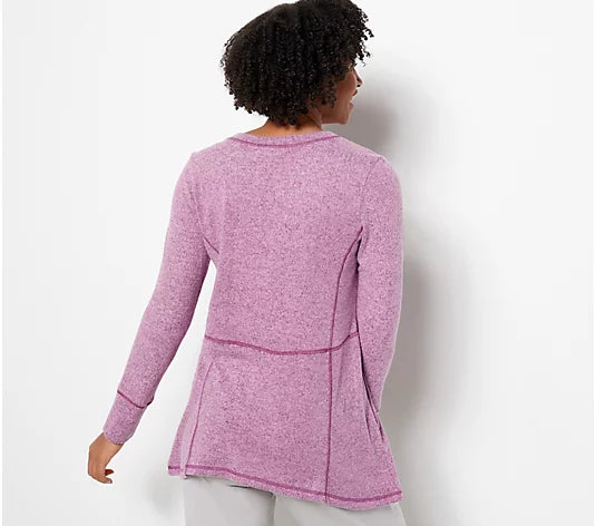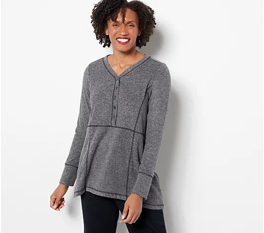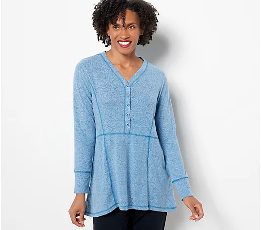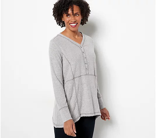 LOGO Lori Goldstein Brushed Sweater Knit Henley Top V NEW A469704