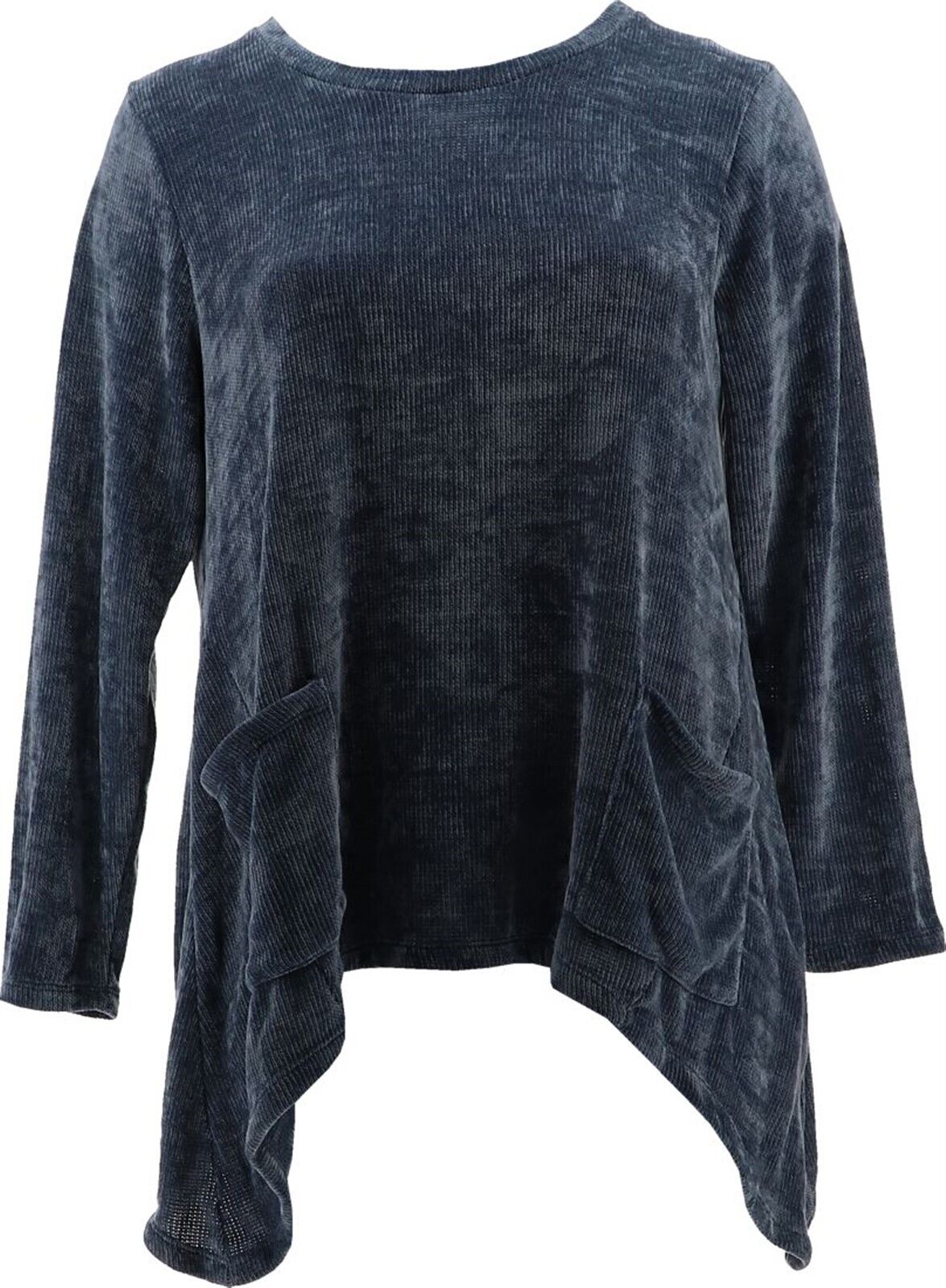 LOGO Lori Goldstein Chenille Sweater Sharkbite Hem Mallard Indigo