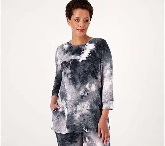 LOGO Lounge by Lori Goldstein Tie-Die 3/4 Sleeve French Terry Top