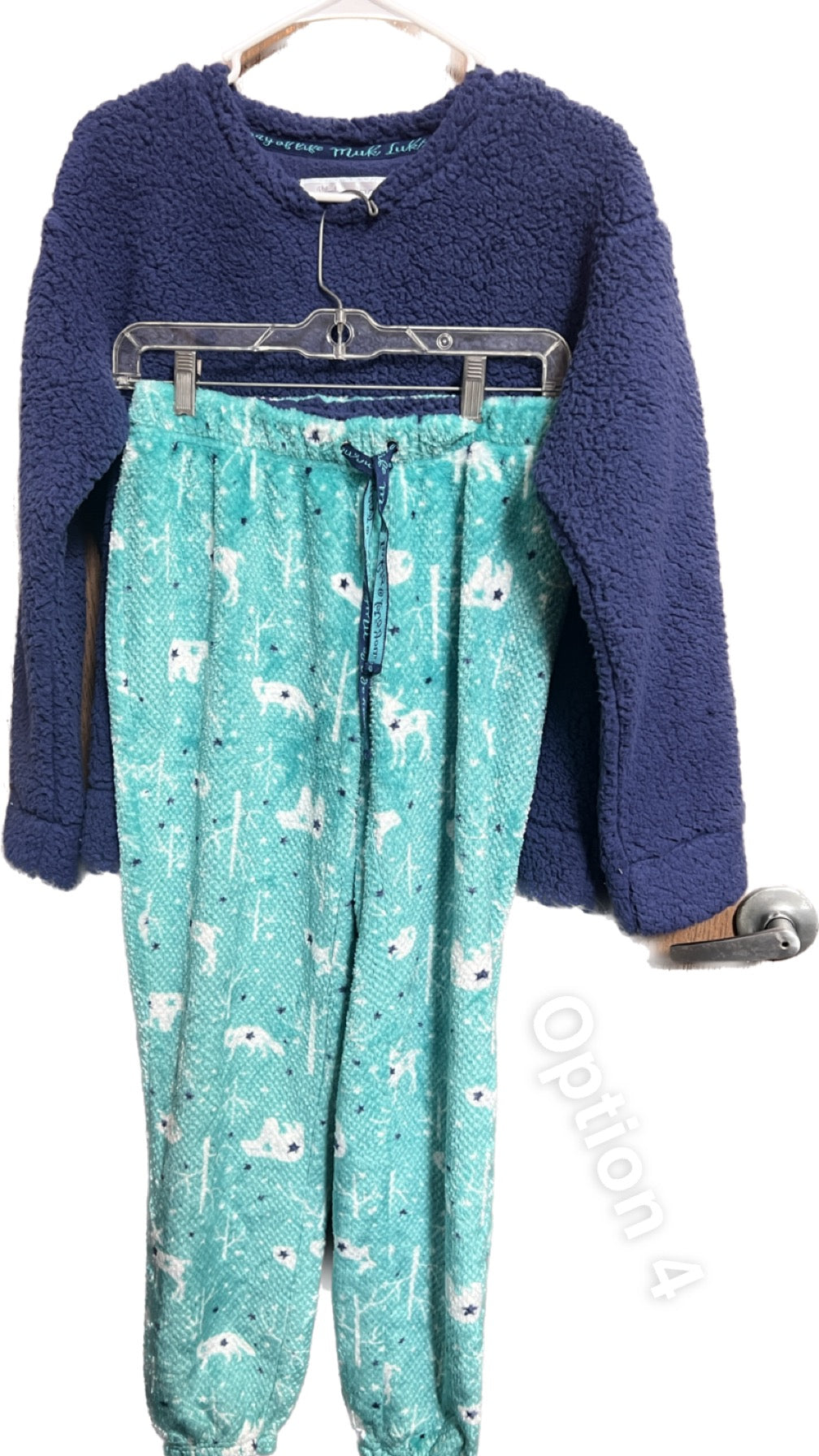 MUK LUKS Women’s PJ Set Faux Sherpa Top & Fleece Jogger Pant