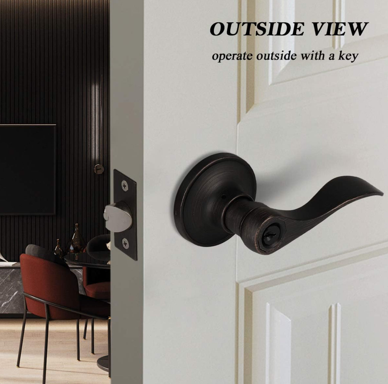 - SAFE & SECURE FOR ADDED SECURITY,Keyed Entrance : install on exterior doors (including knobs or handle sets); Be locked with keys outside and turn buttons from inside,please note each lock with different Key;