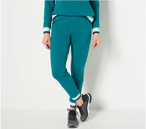 Sport Savvy Women's Regular French Terry Jogger w/Stripe Cuff GREEN