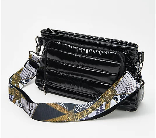 Think Royln Front Zip Wallet Patent Crossbody Bank Street Black