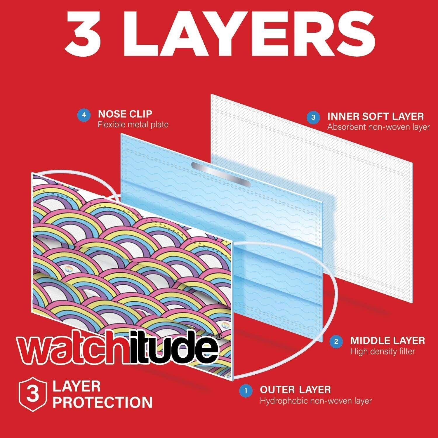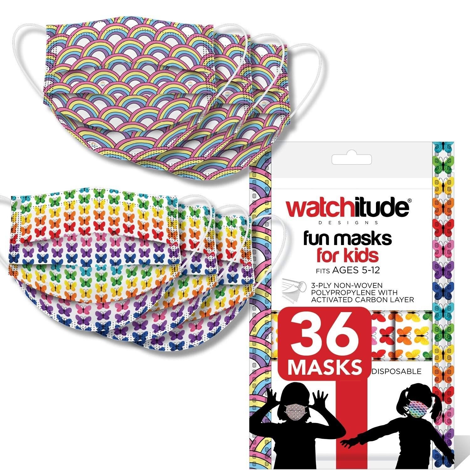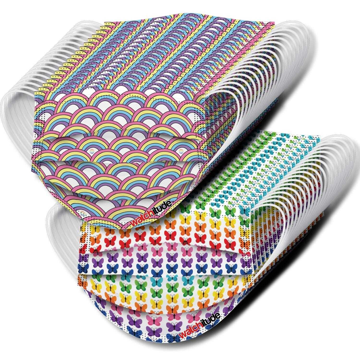 watchitude Kids Disposable Safety Masks, 36-Pack, 18X Butterfly, 18X Rainbow